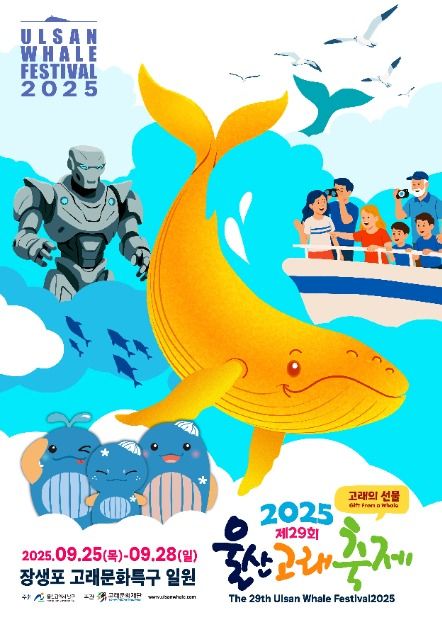 한 줄 요약 · 제29회 울산고래축제는 생태·예술·기술·체험을 한데 엮은 시민 참여형 대축제입니다. 장생포 고래문화특구 전역에서 AI 로봇·미디어아트 개막, 시민 고래 퍼레이드, 가족형 무대, AR·로봇 체험존, 로컬 푸드와 플리마켓까지 낮과 밤이 다른 울산의 가을을 만끽할 수 있습니다.