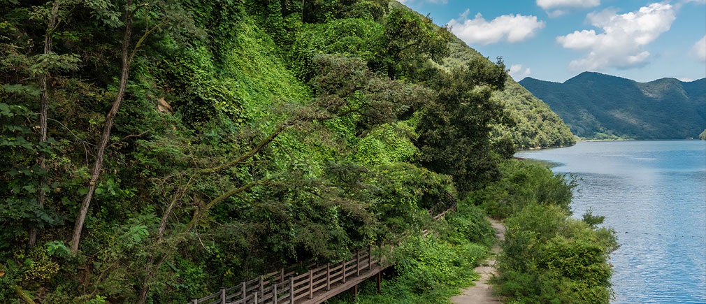 가장 인기 있는 구간은 정지용 생가에서 시작해 향수길 쉼터와 향수 호수길을 거쳐 부소담악으로 이어지는 약 5km 코스입니다. 길을 따라 다양한 시비와 정지용 시인의 문구가 곳곳에 설치되어 있어, 마치 시 속을 직접 걷는 듯한 감성이 깃든 산책로입니다. 특히 향수 호수길은 옥천의 아름다운 호수와 산자락, 옛 시골집 풍경이 어우러진 구간으로, 걷기 편한 흙길과 나무 데크로 조성되어 있어 남녀노소 누구나 편하게 걸을 수 있습니다.