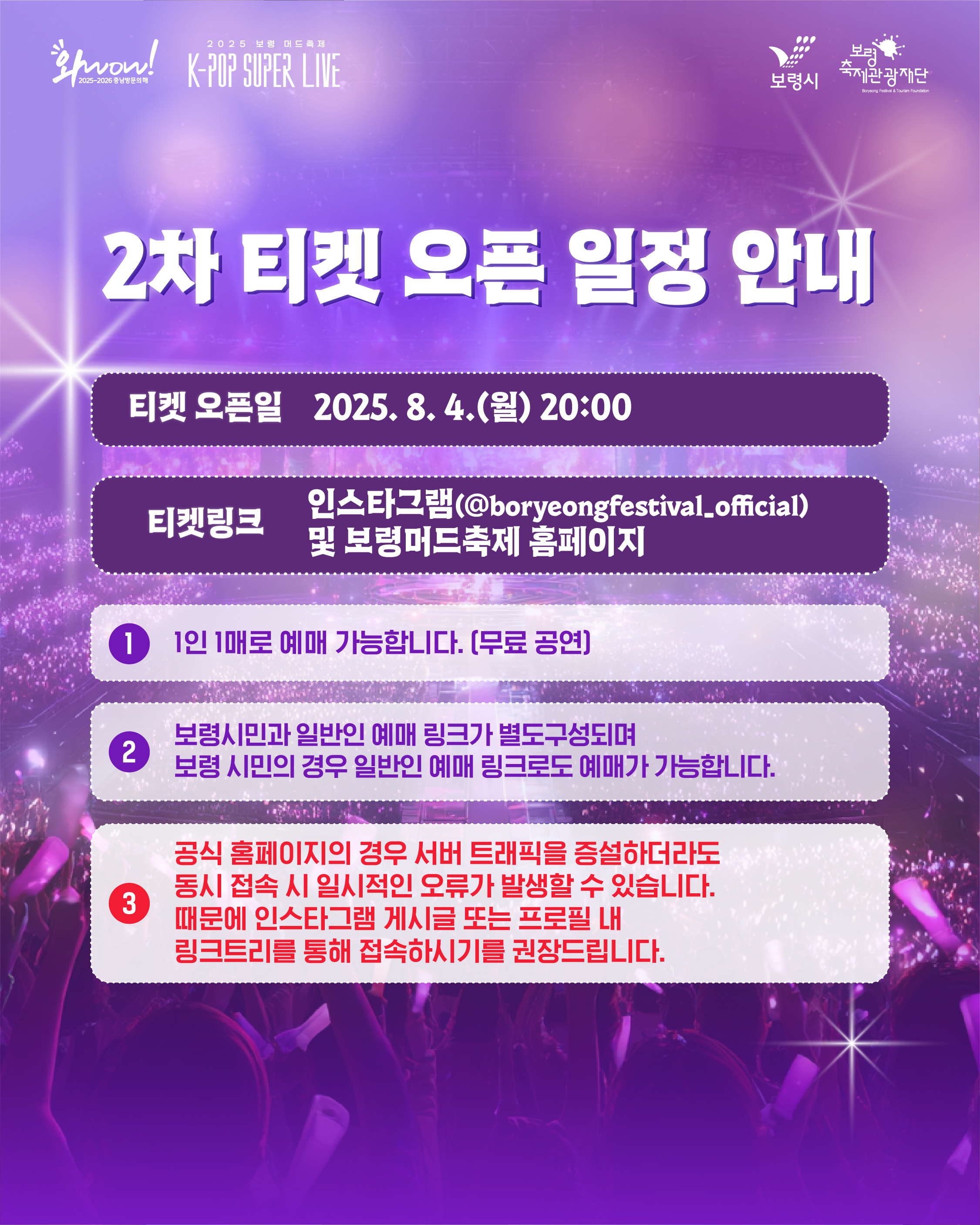 | 8월 2일 (토) | 20:00 ~ 21:00 | EDM 비치 페스티벌 | 대천해수욕장 메인 스테이지 |
